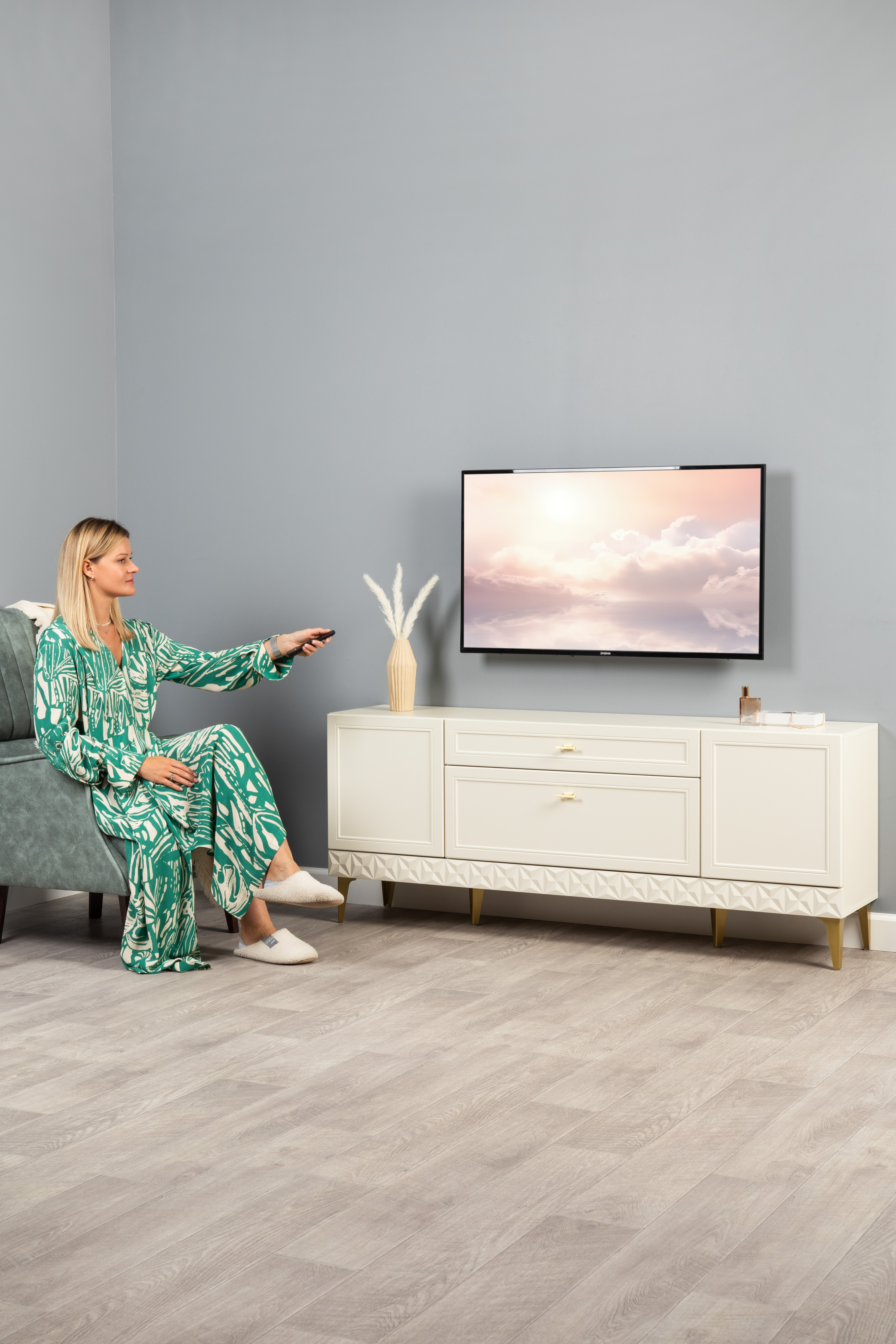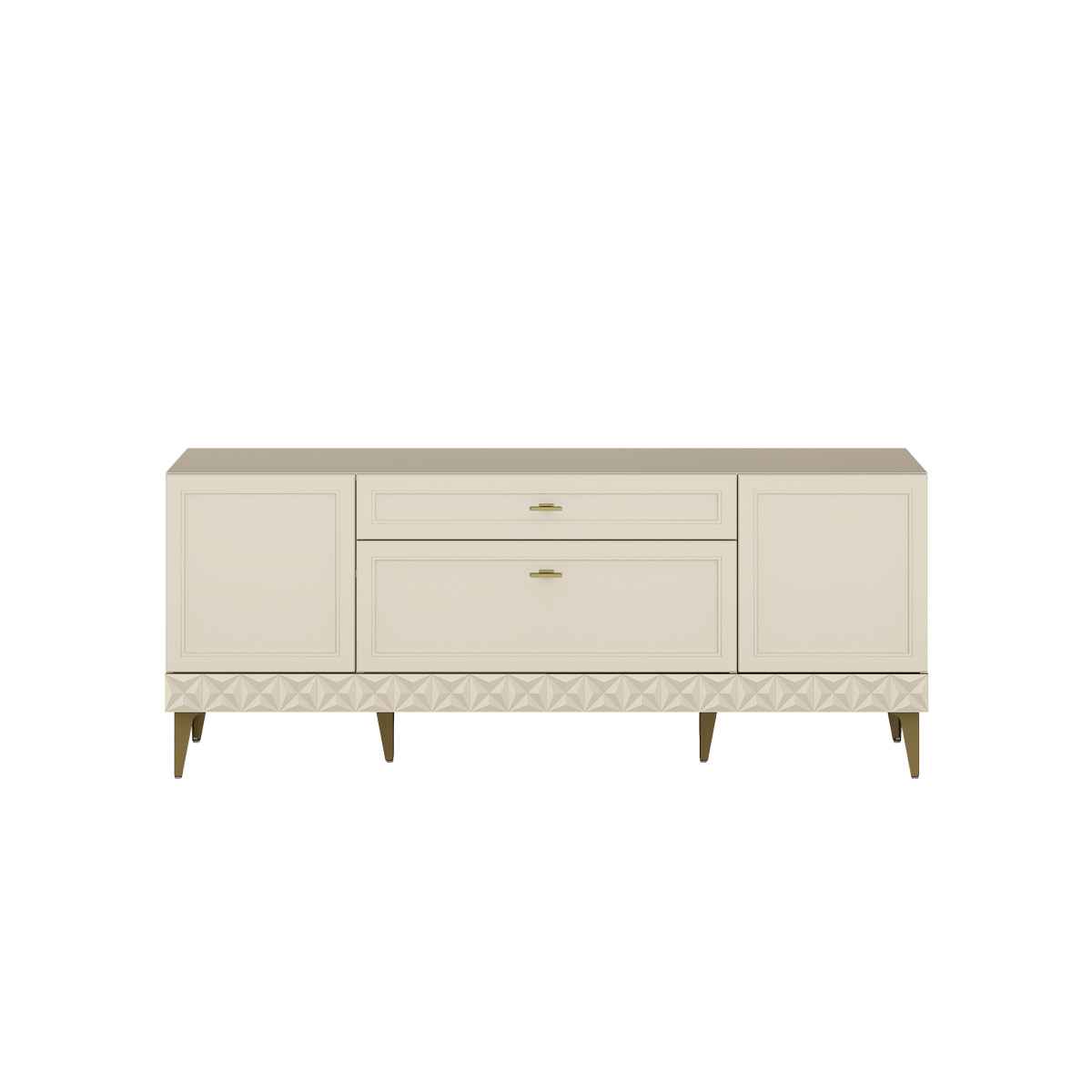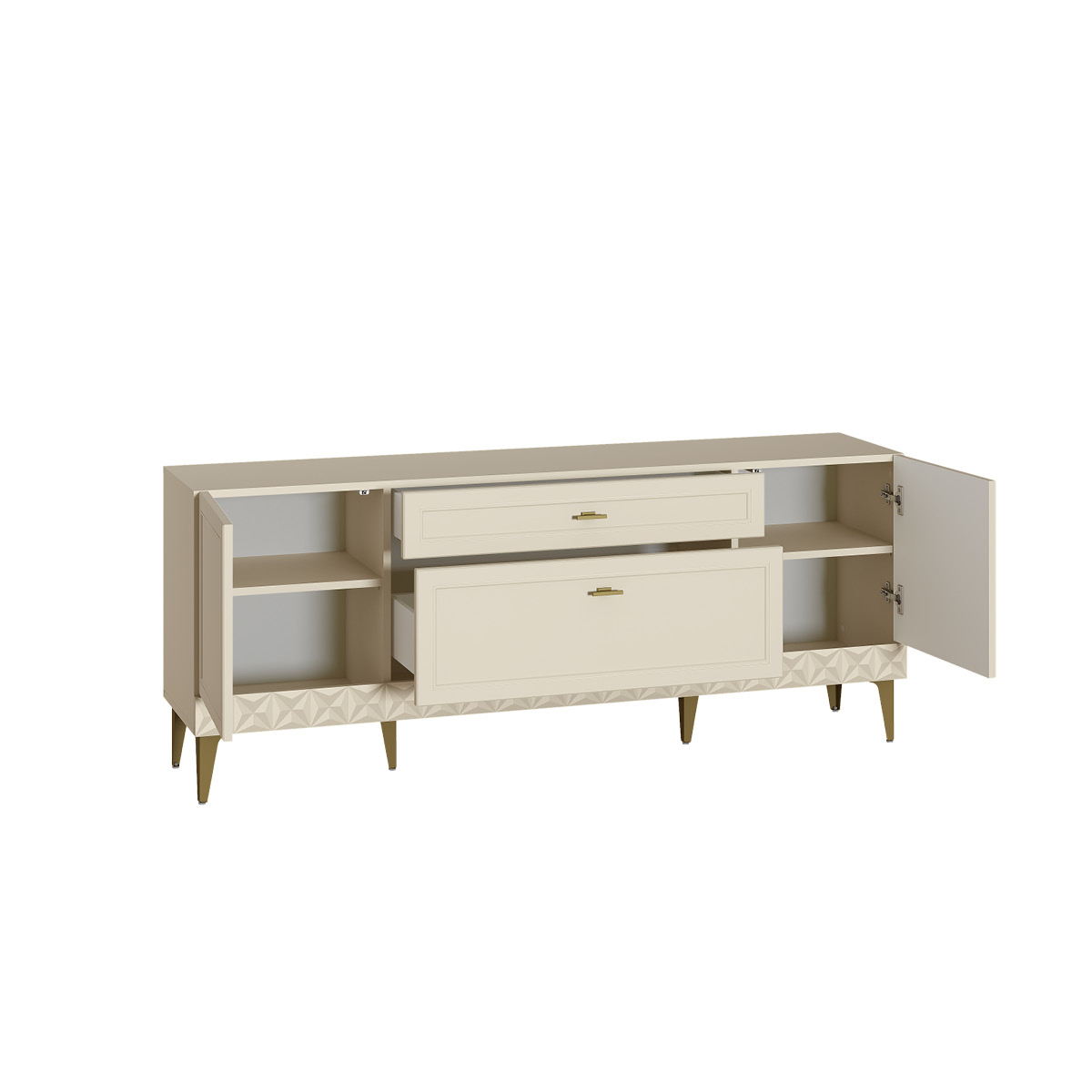 Гостиная Марион композиция 2 слоновая кость С341 PE, слоновая кость 6898 ПВХ, белый PE шагрень (собирается на любую сторону)