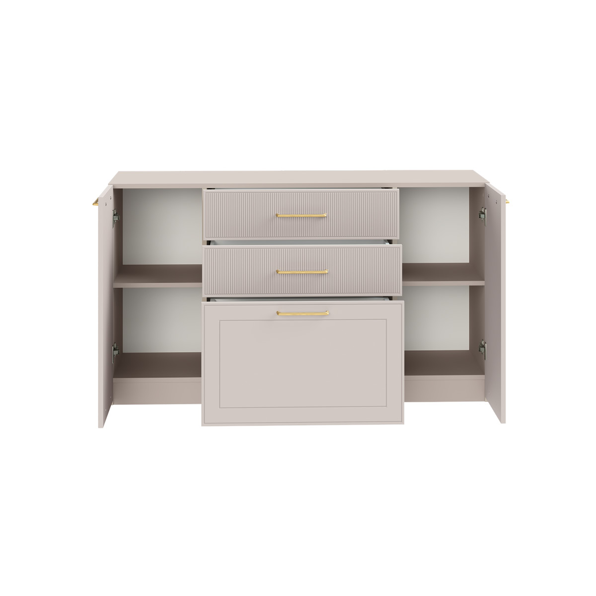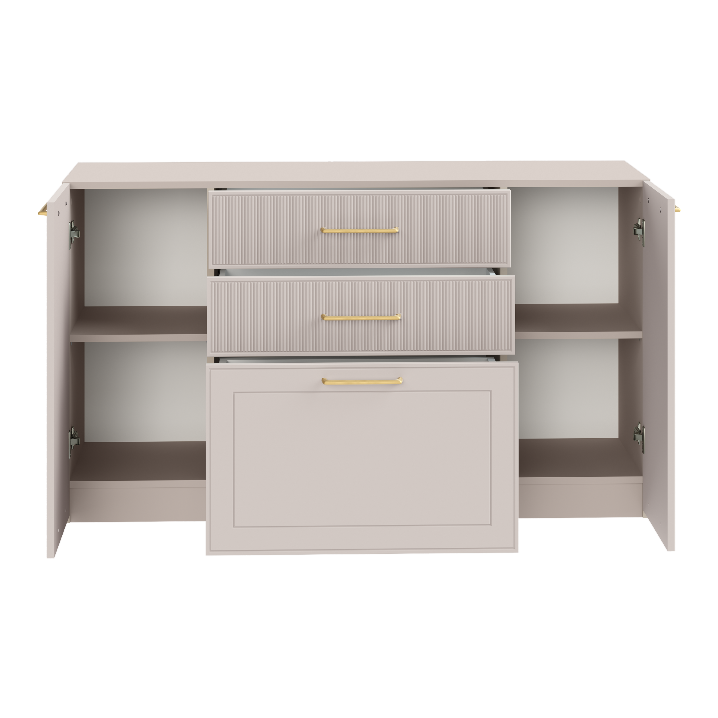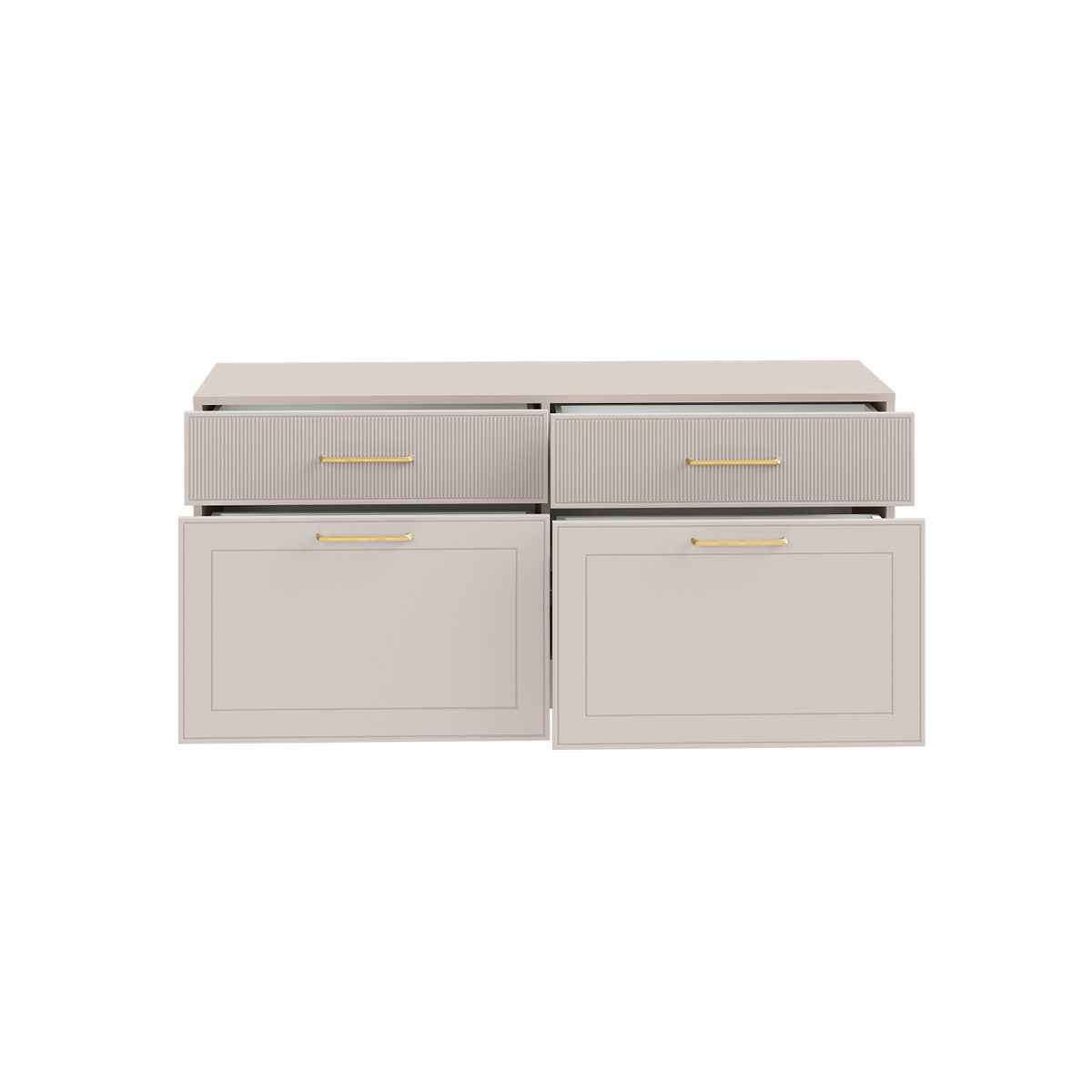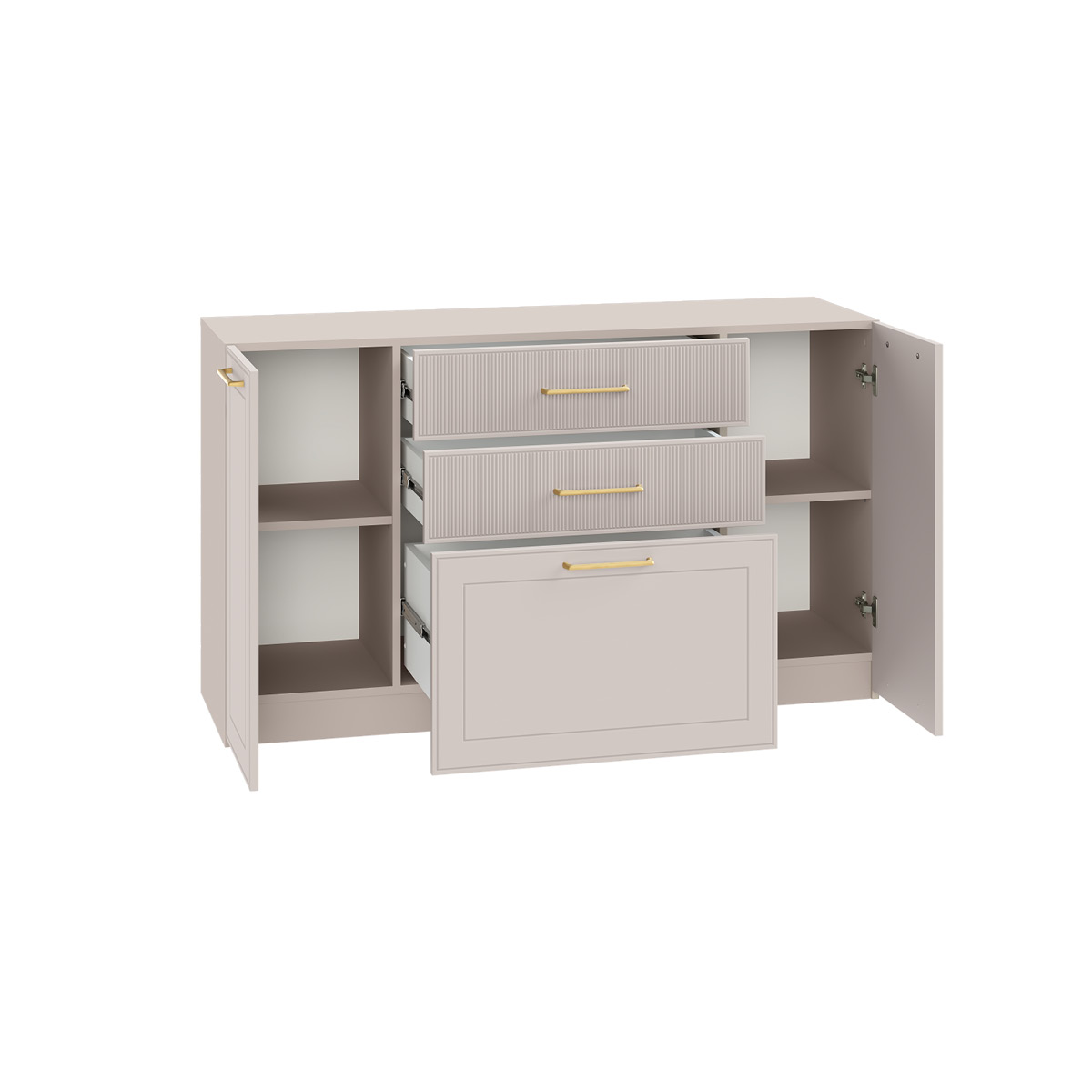 Гостиная Ричфорд композиция 2 без карнизов, кашемир 5981 BS, моно керамика D166-2 ПВХ, белый PE шагрень (собирается на любую сторону)