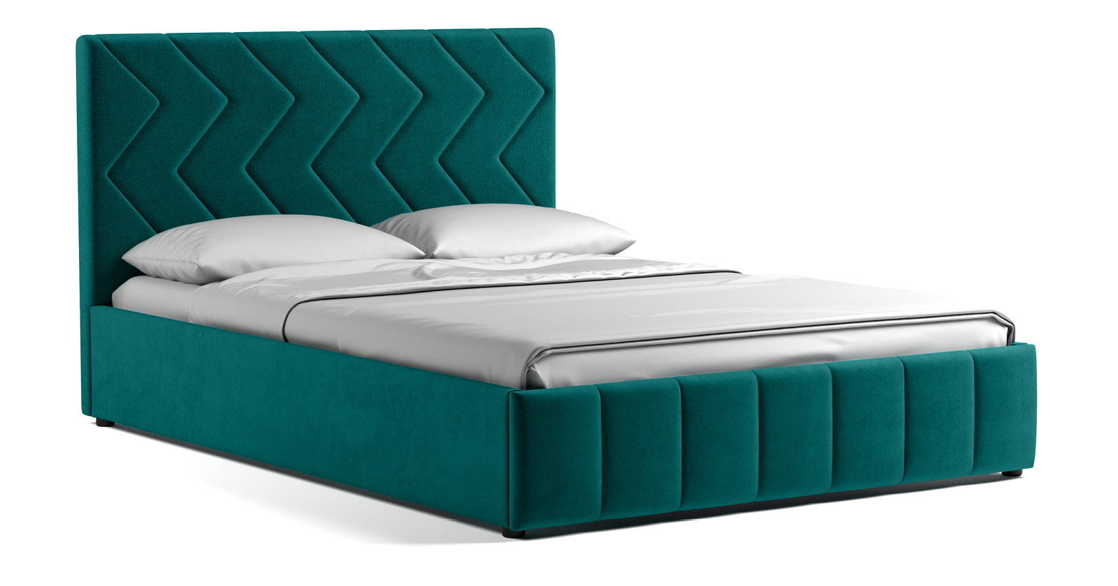 Кровать Милана 140 велюр сине-зеленый с ортопедическим основанием и подъемным механизмом