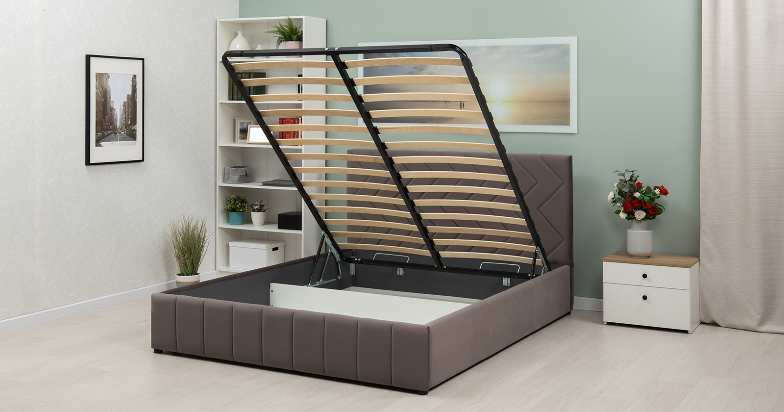 Кровать Милана 160 велюр серо-коричневый с ортопедическим основанием и подъемным механизмом