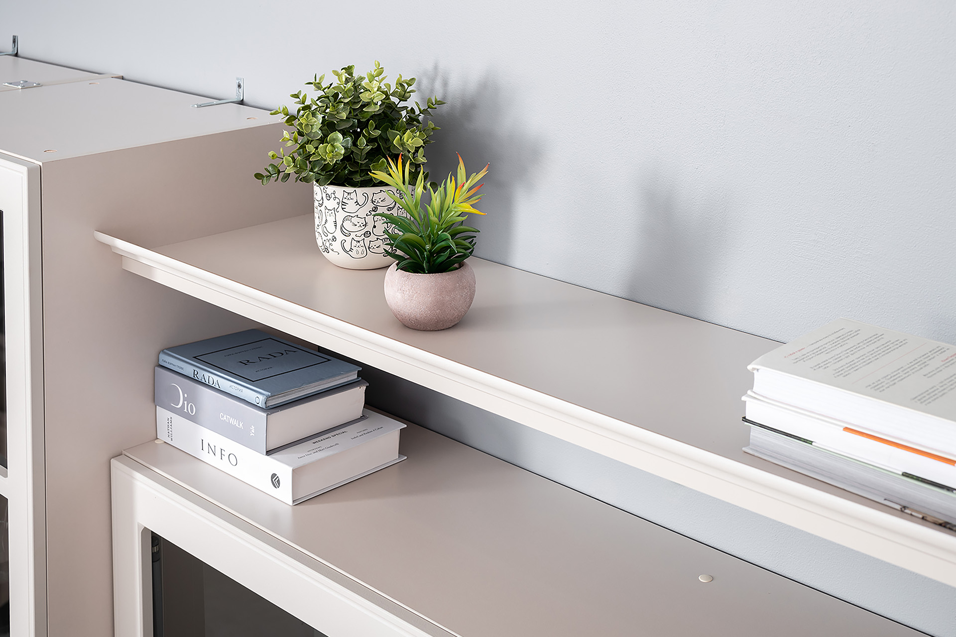 Для более завершенного образа, к шкафам можно дополнительно приобрести карнизы.