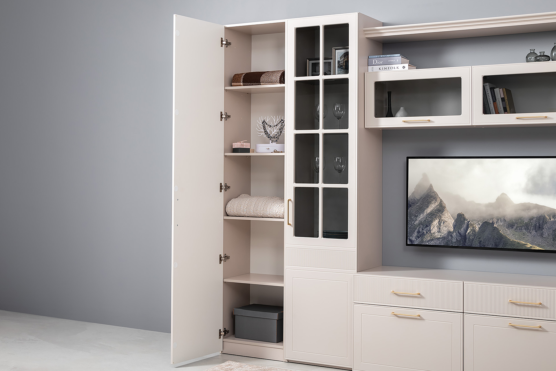 Шкаф-пенал Ричфорд 16.327.01 кашемир 5981 BS, моно керамика D166-2 ПВХ (собирается на любую сторону)