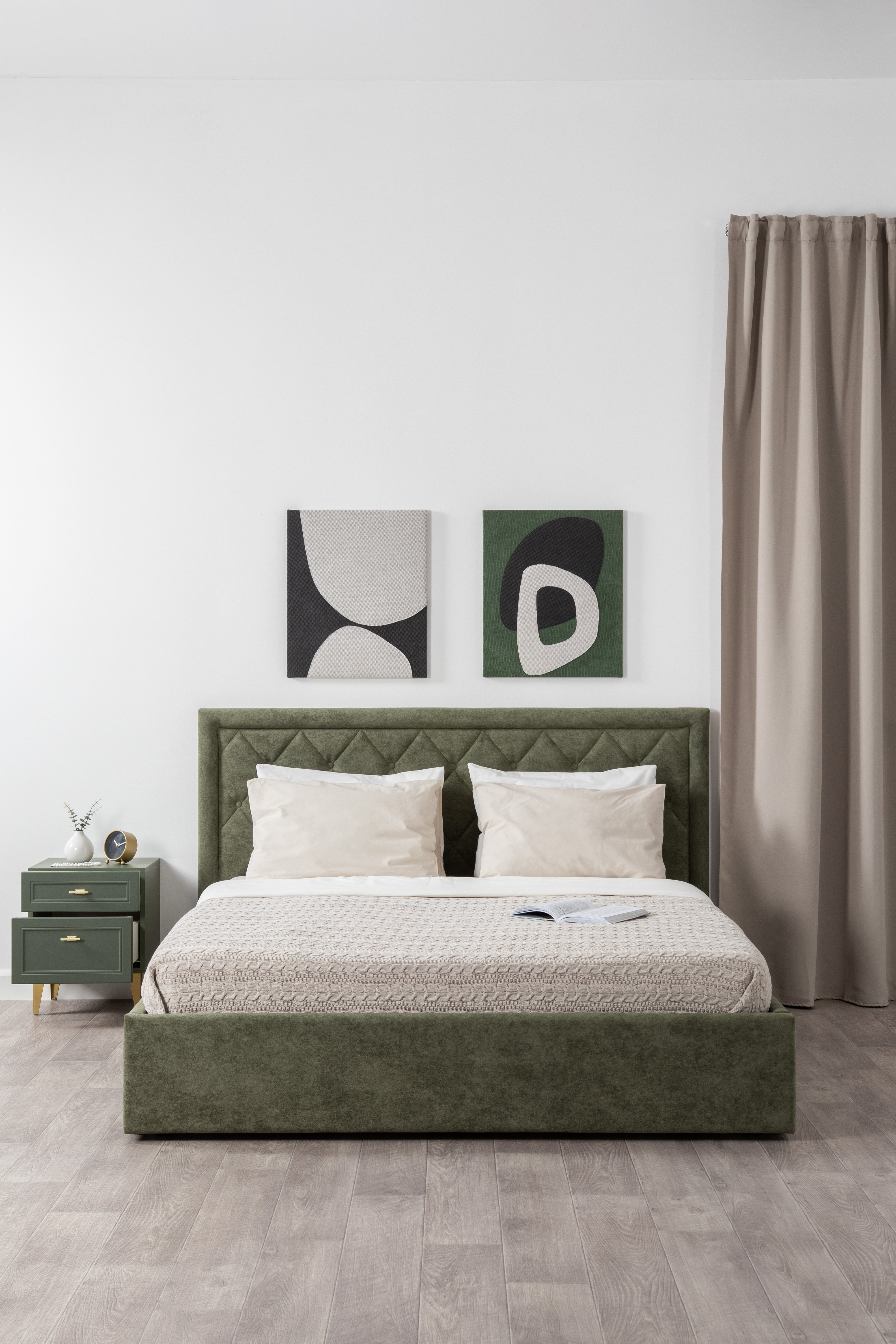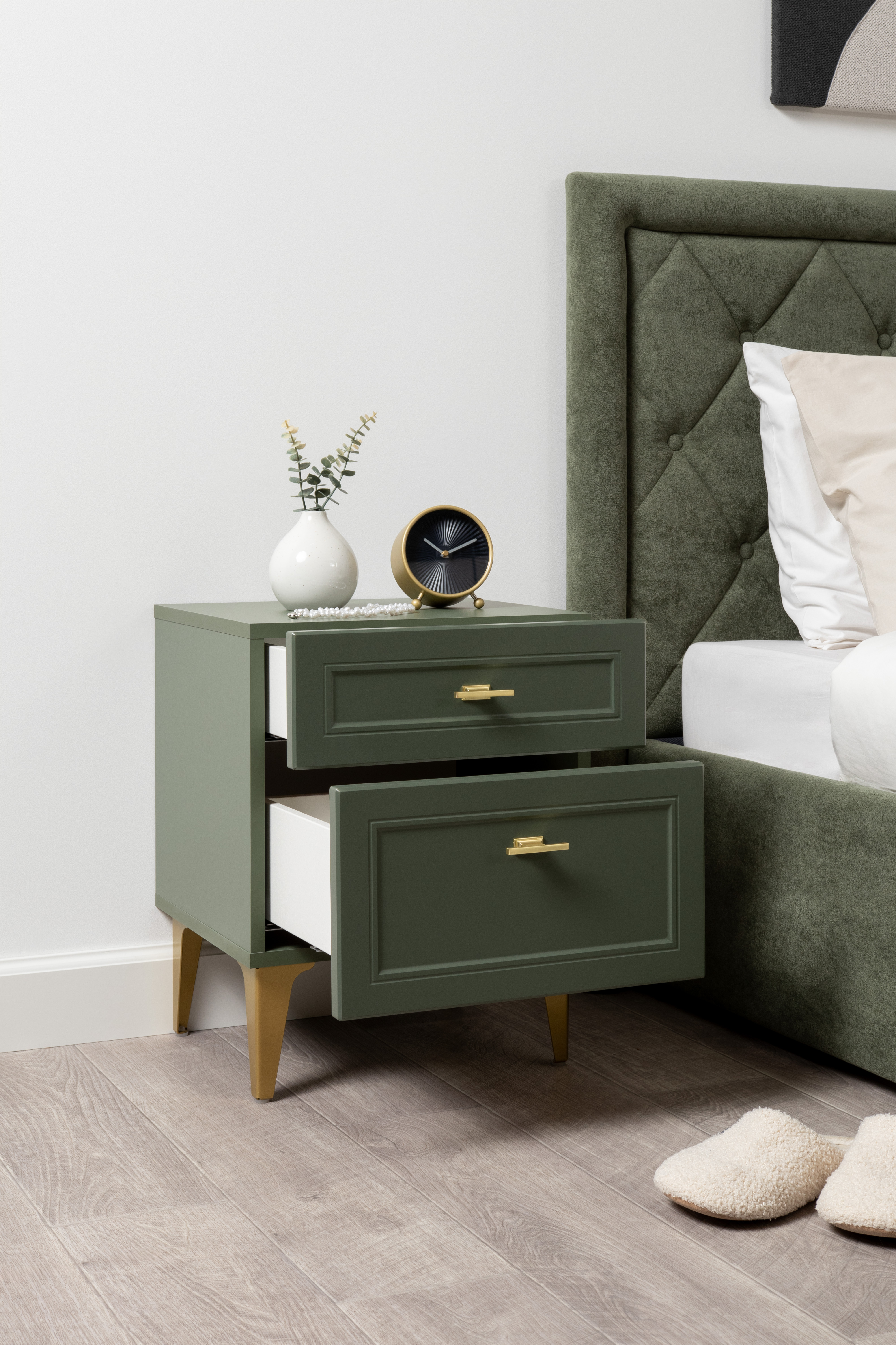 Тумба прикроватная Марион 16.14 дымчатый зеленый K521, олива шагрень AG 1050 ПВХ, белый PE шагрень